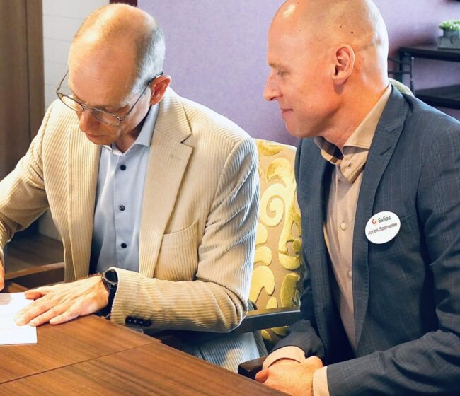 Bestuurders Paul Vel Tromp (De Hoop) en Jurjen Sponselee (Salios) ondertekenden op 15 mei in Salios-locatie Regionaal Expertisecentrum Korsakov het Dijckhuis een samenwerkingsovereenkomst om de zorg voor mensen met (een vermoeden van) het syndroom van Korsakov te verbeteren. Door de krachten te bundelen, willen beide organisaties barrières in het zorglandschap doorbreken.